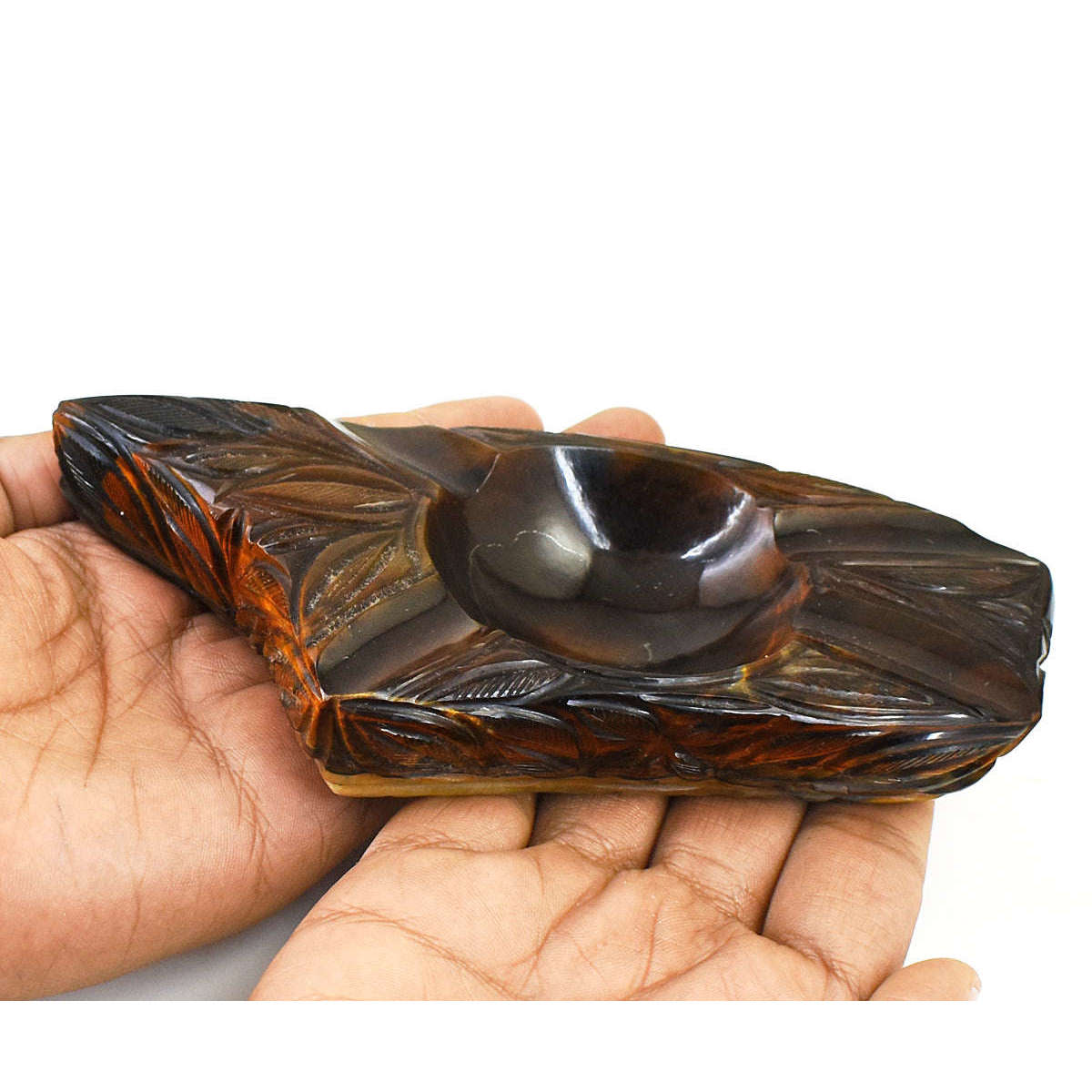 Genuine Tiger Eye Carving of Candle Holder. The beautiful masterpiece is carved from a single Tiger Eye Rough. It takes about 6-7 days to carve such beautiful masterpieces.The same is complete carved by hand - by talented skilled craftsman.
